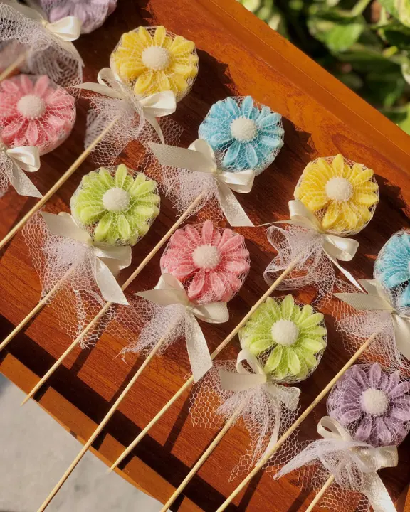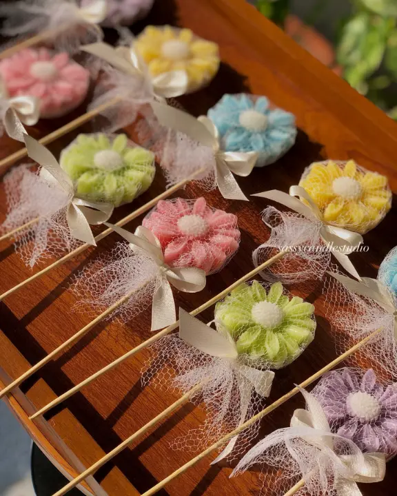 • Hand-Wrapped Candle Bouquets: A set of flower candles elegantly wrapped in aesthetic pastel paper.