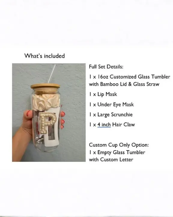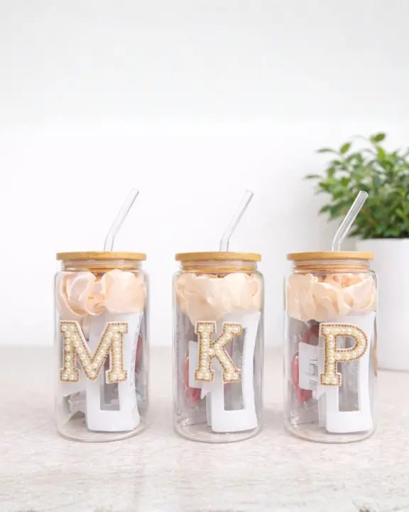 Hydrate in style with a personal touch! Our Personalised Initial Glass Tumbler Set is the ultimate self-care essential for your daily routine. This aesthetic bundle features a high-quality glass tumbler customized with your chosen initial, topped with an eco-friendly bamboo lid and a reusable glass straw. To complete the “cozy” vibe, we’ve included a matching silk scrunchie, making it the perfect gift for bridesmaids, birthdays, or just treating yourself.